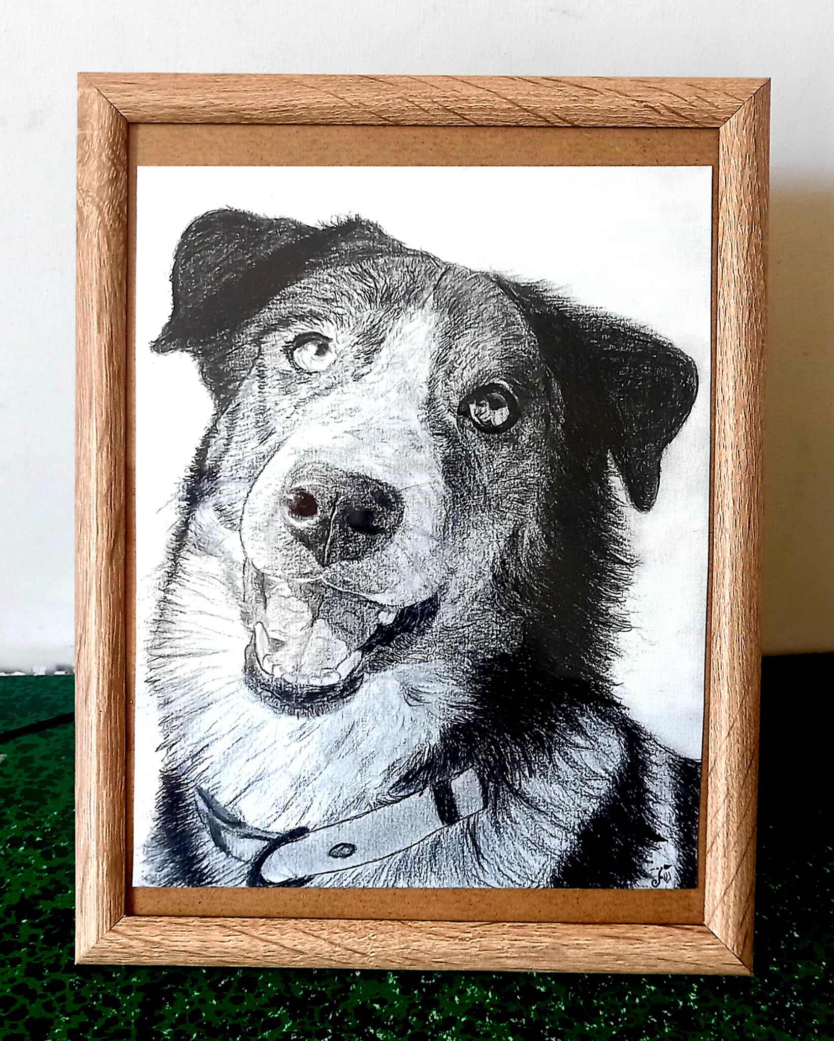 Je vous propose trois options : des mini-portraits (en pied), des caricatures humoristiques ou des portraits (humains et animaliers). Ceux-ci sont tous réalisés à la main, en noir et blanc aux crayons graphites ou en couleur (pastels, aquarelles, posca). Pour un rendu finalisé, il est possible de vous ajouter un éco-cadre en bois ou un décor personnalisé « qui sort du cadre ». Je vous invite à cliquer sur chaque image pour les découvrir.